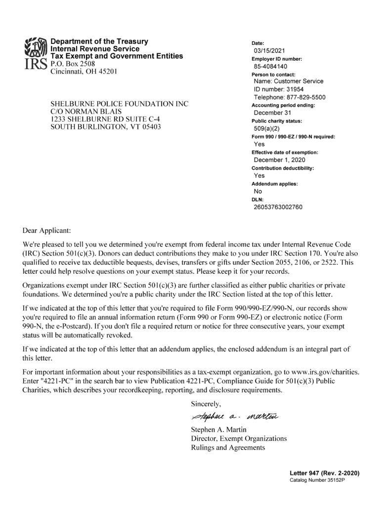 If you are looking for a way to support our Police Department, check out the Shelburne Police Foundation, Inc website.